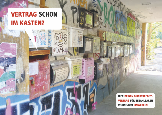 Direktkredite bieten die Möglichkeit einer sinnvollen, sozialen und nachhaltigen Geldanlage. Dafür wird zwischen den Kreditgeber_innen und dem Hausprojekt ein Kreditvertrag abgeschlossen.